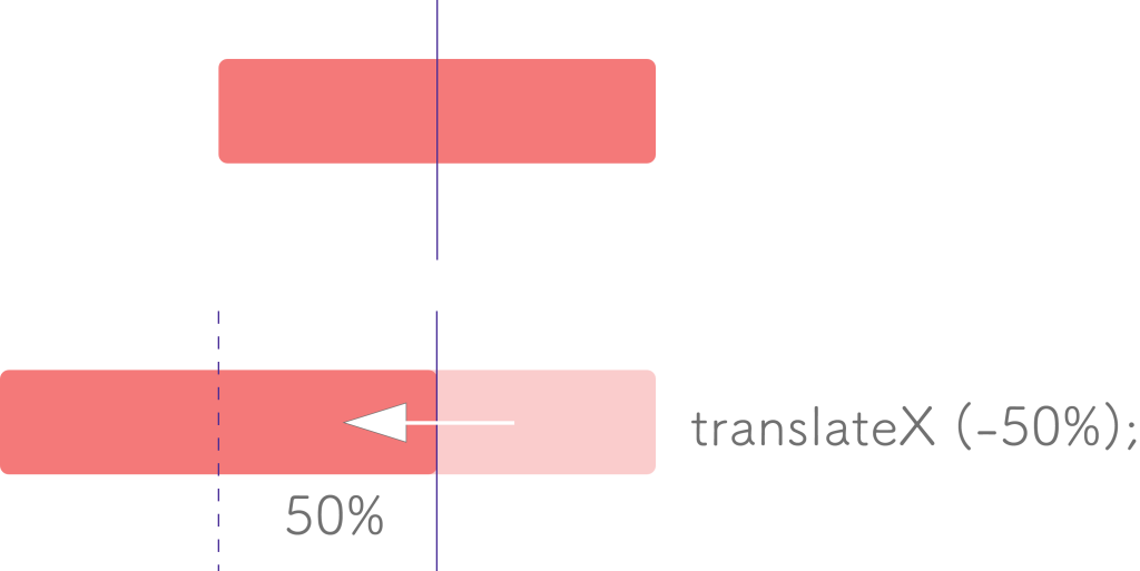 - transformプロパティのtranslate値(translateX, translateY, translate):その要素自身の大きさに対しての%